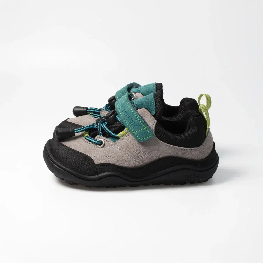 Der Steinbock ist der ideale niedrig geschnittene Schuh für kleine Abenteurer, die bei jedem Wetter draußen unterwegs sind. Dank der Kombination aus Bio-Veloursleder, synthetischen Textilien und einer TEX-Membran bleibt der Schuh selbst bei starkem Regen trocken. Eine abriebfeste Schicht schützt zuverlässig vor steinigem Untergrund. Der praktische Schnellverschluss und der verstellbare Klettverschluss sorgen für eine optimale Passform und sicheren Halt. Reflektierende Details erhöhen die Sichtbarkeit bei Dämmerung. Mit einer rutschfesten, flexiblen Sohle bietet der Steinbock Komfort, Sicherheit und Stabilität – für jedes Abenteuer!