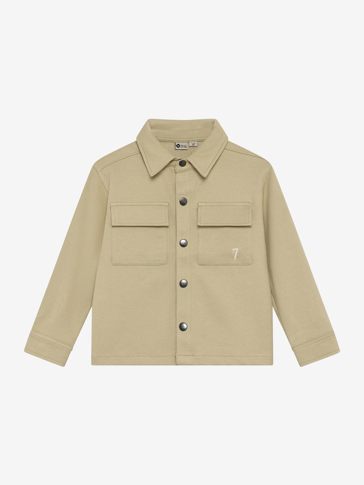 Overshirt von Daily7Kids. Die Jacke ist mit einem gespreizten Kragen gestaltet und wird mit Knöpfen geschlossen, was ihr ein hemdähnliches Aussehen verleiht. Zusätzlich verfügt er über zwei Brusttaschen mit Klappen. Die Jacke ist einfarbig.