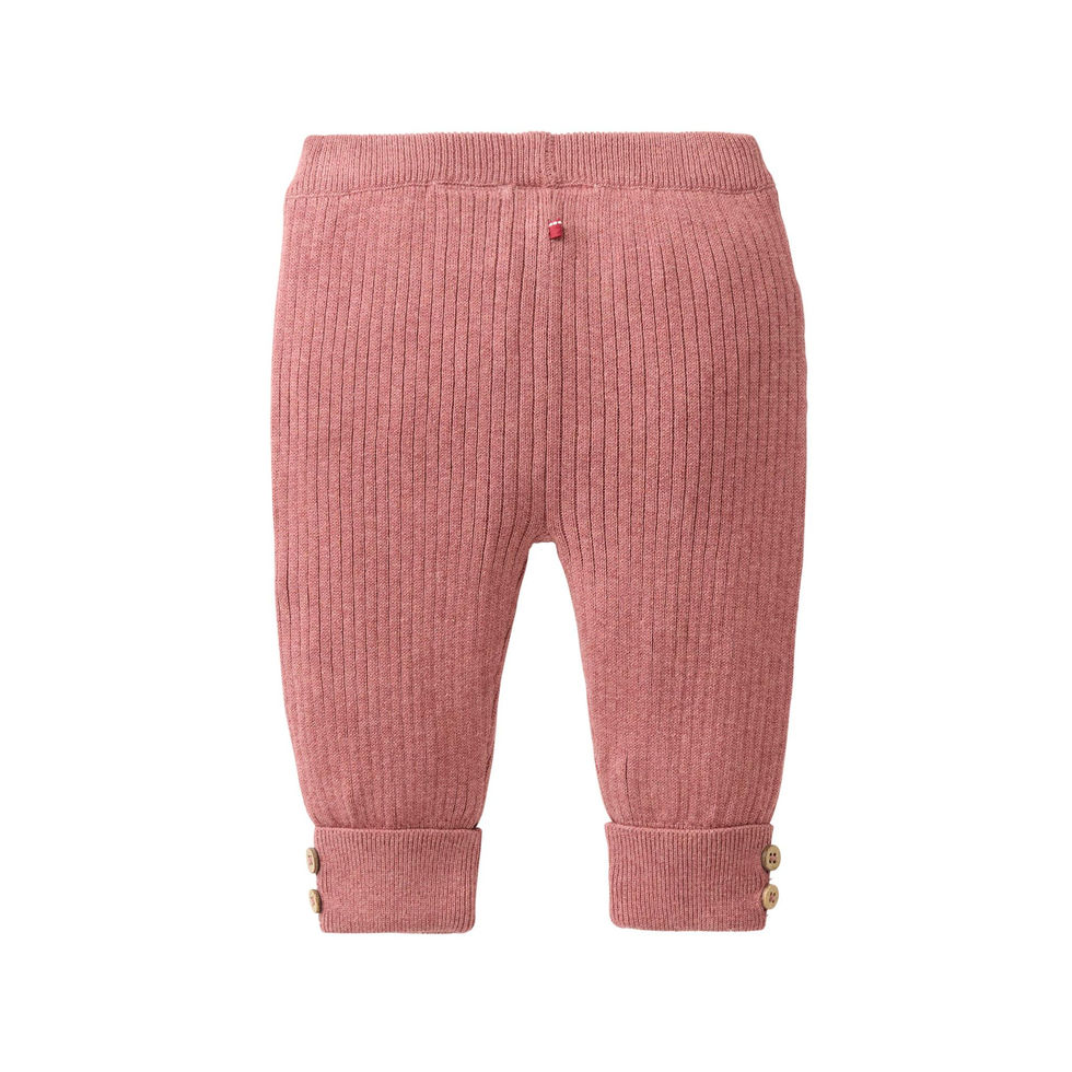 | Reinschlüpfen und wohlfühlen. Das ist die Devise bei dieser Strickleggings in Rippstruktur. Der Hosenumschlag am Beinsaum lässt sich mithilfe der zwei Kokosknöpfe aufknöpfen und lässt die Hose ein Stückchen länger mitwachsen. Aus kuschlig weichem Mélange Garn. |